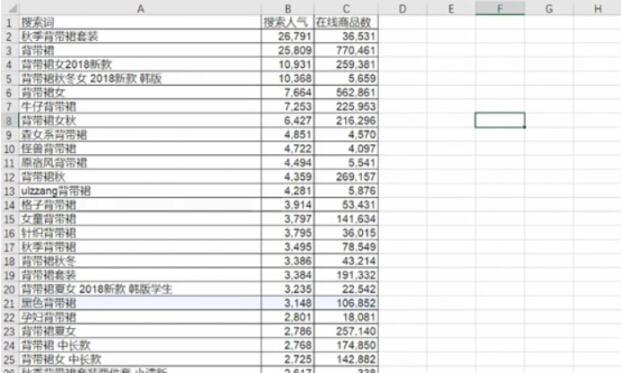然后建立一个Excel表格,将背带裙相关的搜索结果都复制到表格,尽量多整理一些,