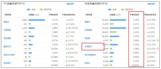 比如突然有了大量的来自于手淘首页的流量的时候,这时候你的转化率肯定是会下滑的,此时你只需要看一下跟行业均值对比,你的手淘首页流量有没有比较差,如果都OK,是可以不用处理的。